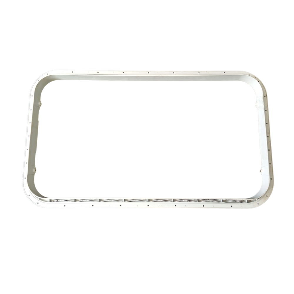 Acabamento alçapão Marcopolo G7, moldura externa teto ônibus, peça Acrylis 09657, acabamento superior alçapão G7.