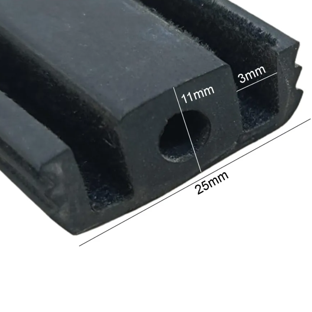 📦 Código da peça: 011009027 | 🧱 Material: Borracha flocada com base técnica | 📐 Aplicação: Trilho de deslizamento e vedação de janelas corrediças