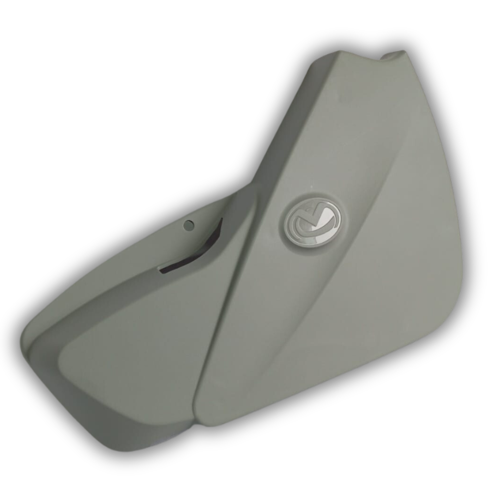 Peça de acabamento utilizada na lateral externa das poltronas dos ônibus rodoviários Mascarello Roma 370, especialmente nos modelos da linha III fabricados a partir de 2012. Além de proteger a estrutura da poltrona, essa capa oferece porta-copo integrado, agregando funcionalidade e conforto ao passageiro.