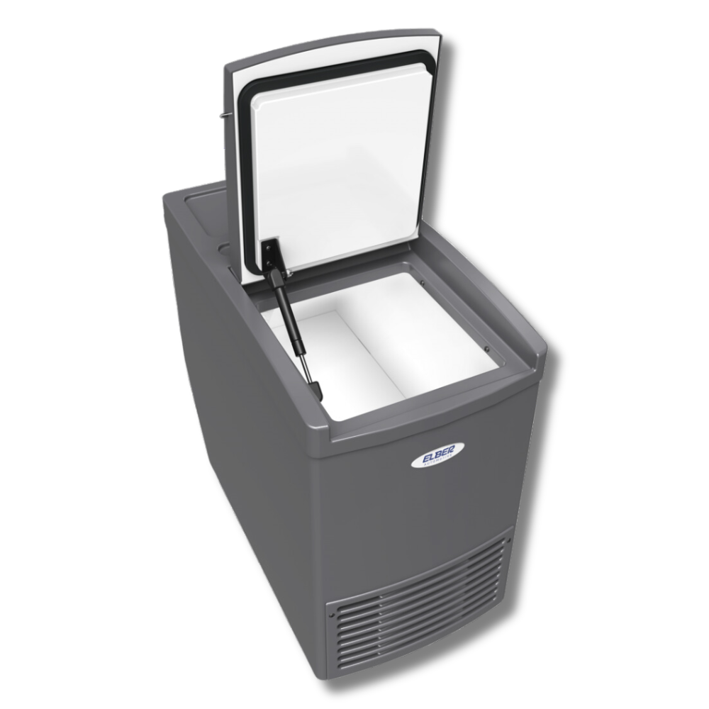 A geladeira para ônibus 75 litros foi desenvolvida para ser instalada no fundo do corredor. Além disso, é instalada diretamente na bateria do veículo, economizando energia e mantendo o funcionamento mesmo com o motor desligado. Também possui módulo protetor de bateria para proteger a vida útil da bateria do veículo e compressor hermético que não aquece a parte externa do equipamento, com baixo ruído. Além da comodidade para os clientes em ter água gelada e lanches frescos, a geladeira para ônibus 75 litros é um equipamento automotivo, feito para as mais severas condições de estrada. A estrutura do gabinete e dos componentes forma um conjunto resistente para você ir cada vez mais longe, com conforto e autonomia.