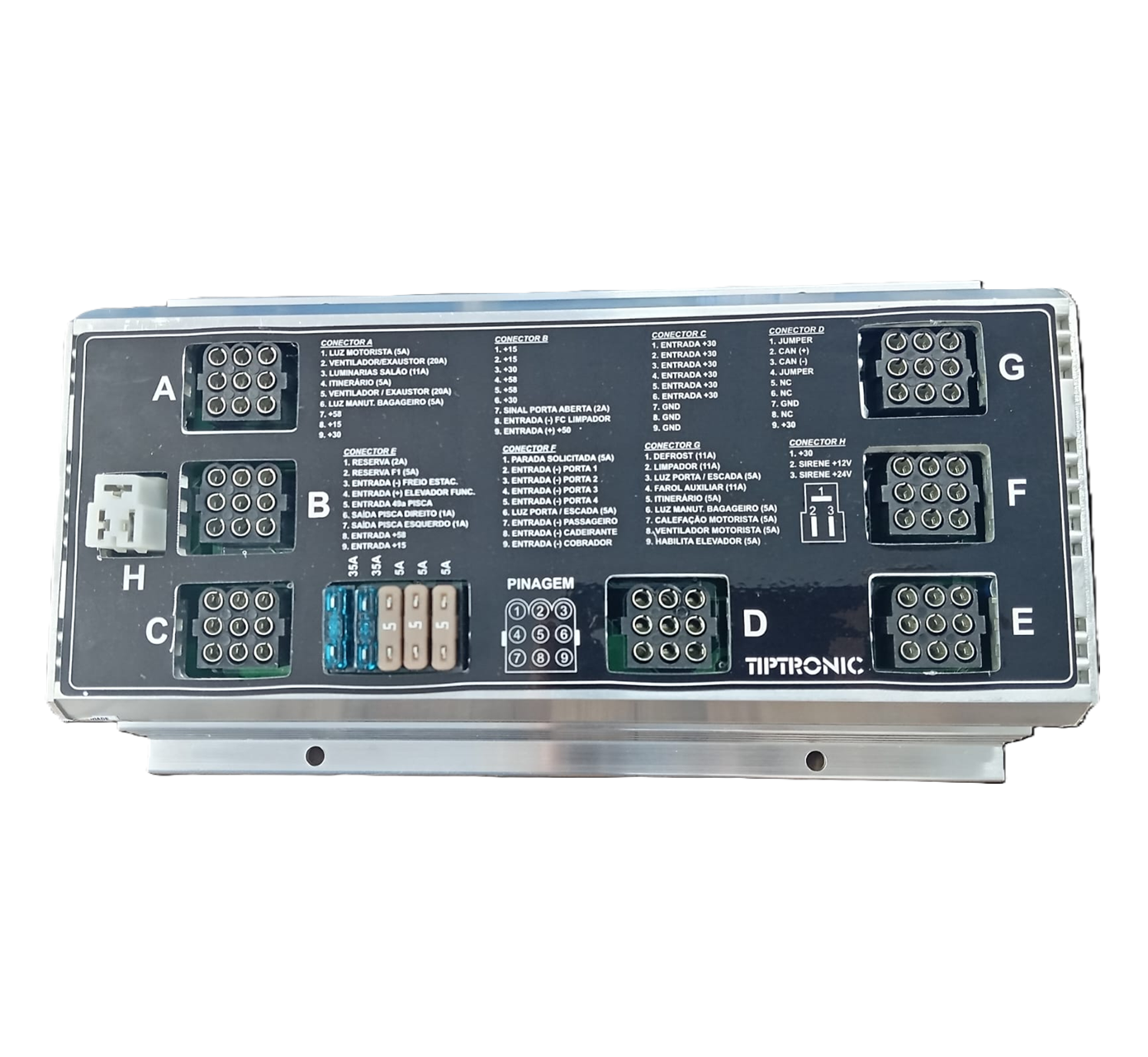 MODULO MULTIPLEX URBANO RESPONSAVEL PELAS FUNÇÕES ELETRICAS DO VEICULO COMO, ILUMINAÇÃO INTERNA,DESEMBAÇADOR DE PARABRISAS,FARÓIS,ITINERARIO,CALEFAÇÃO,VENTILADOR,LUZ PORTA,SIRENE,ELEVADOR E OUTRAS DEMAIS APLICAÇÕES ELETRICAS...