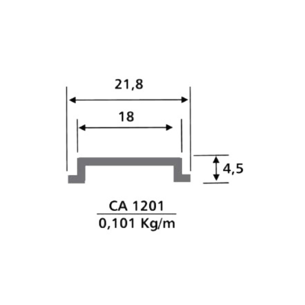 📦 Código da peça: CA1201 | 📏 Comprimento: 6 metros (barra inteira) | 🧱 Material: Alumínio extrudado | 🎨 Acabamento: Natural fosco